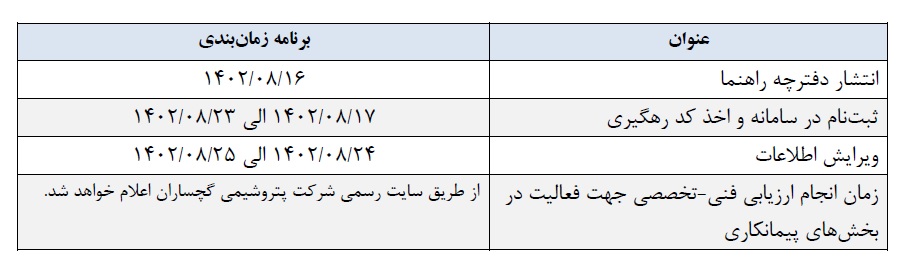 جدول زمانبندی آگهی استتخدام پیمانکاری حجمی